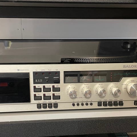 Kuvien mukainen Saloran kasettisoitin. Sähköjohto puuttuu, joten toimintaa en ole pystynyt toteamaan. Ei patteritoimintoa.