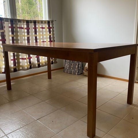 Myydään kuuden hengen Ikean Dalshult ruokapöytä. Kansi valkoinen, jalat koivunvärinen. Oikein siistikuntoinen. Nouda nopsaan muuton tieltä.