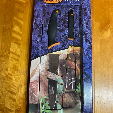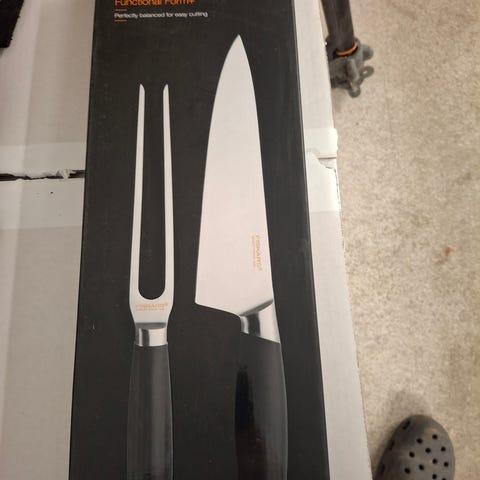Myydään käyttämättömät Fiskarsin paistihaarukka sekä kokkiveitsi. Myydään yhdessä.