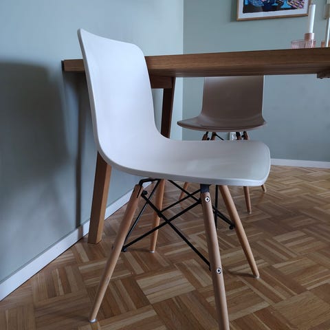 Settinä Maskun vanhan tuotannon Ekholm Ruokailutuolit 2kpl sekä muualta ostettu ruokapöytä. Pöydässä osumaa sivussa (ks. kuvat), Tuolit hyvässä kunnossa!