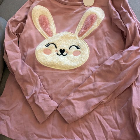 Ihana koirakuvioinen Lindexin 116-kokoinen ohut pitkähihainen paita. Väri lila / violetti. Laput kiinni, uusi ja käyttämätön.
