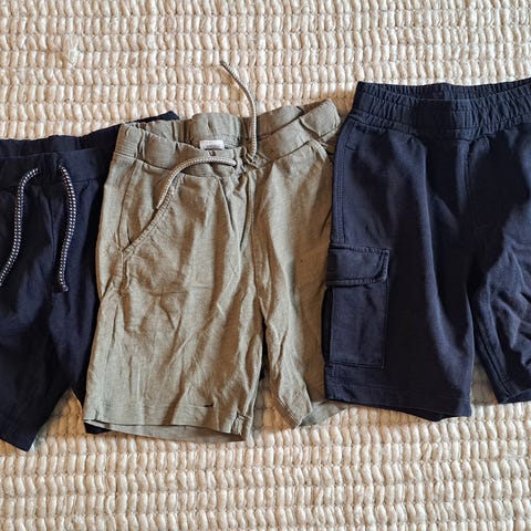 Myydään siistikuntoinen poikien shortsisetti, koko 110/116.