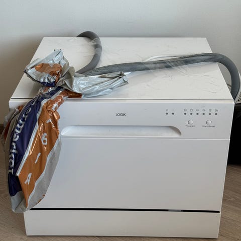 Toimiva Logik astianpesukone tason alle -malli. Astianpesukone on tarkoitettu asennettavaksi keittiötason alle. Etupaneeli on kuvassa valkoinen ja kone sulautuu kaapistoon. Sopii keittiöön, jossa halutaan integroida astianpesukone osaksi alakaapistoa.