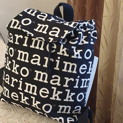 Marimekko Enni Sahalaitaraita mustavalkoinen reppu UUSI