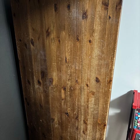 Kansi on ulkonäöllisesti ihan hirveässä kunnossa. Vaaleita lämpövaurioita sekä revenneitä koloja viilussa. Itse hioisin viilun kokonaan pois ja laittaisin uuden, mutta ei jaksa itseä kiinnostaa nyt moinen prokkis.
