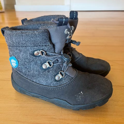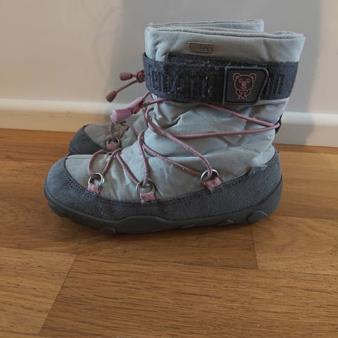Affenzahn lasten kengät, koko 30. Käytetty yhdellä lapsella, olivat käytössä koko talven ajan. On käytön jälkiä kangassa ja pohjassa, muuten ehjät.