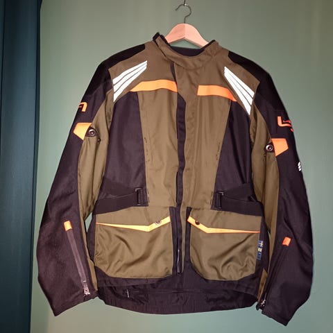 Mc-sport ajotakki, ajohousut, ajokengät ja ajohanskat. Musta ajotakki, jossa logomerkintä hihassa. Mustat ajohousut logomerkinnöillä lahkeissa. Mustat ajokengät, joissa tarrakiinnitys ja vetoketju sivussa. Mustat ajohanskat logomerkinnällä kämmenselässä. Varusteet soveltuvat moottoripyörä- tai mopokäyttöön ajovarusteiksi. Takin koko m52, housut m52 toiset housut m50. Kengät miesten 43 ja naisten 39 sekä naisten hanskat. Todella vähän käytettyjä. Housuihin myös vuoret mukaan!