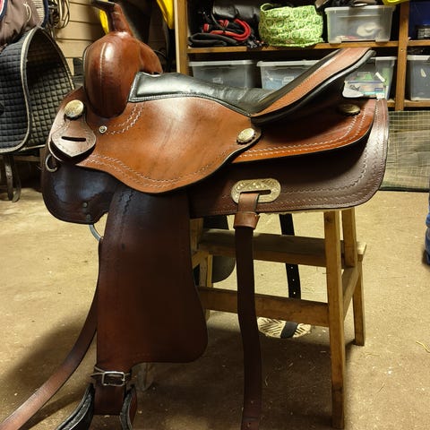 Musta nahkasatula islanninhevoselle. Satulassa on syvä 17" istuin ja pienet polvituet. Pohja on pehmustettu vaalealla lampaanvillalla, alle tarvitaan painetta tasaava padi (voin antaa mukaan yhden pintarikkoisen). Satulassa on jalustinhihnat t-soljilla ja jalustimet sekä useita D-renkaita lisävarusteiden kiinnittämistä varten. Soveltuu islanninhevosen ratsastukseen maastossa ja kouluratsastuksessa yleiskäyttöön.