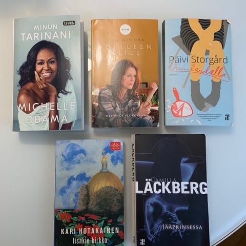 Trendikkäitä, suomenkielisiä kirjoja. Kaikki kirjat ovat lasten- tai nuortenkirjoja. Vain kertaalleen luettuja, eli kaikki kirjat ovat täysin uudenveroisia.