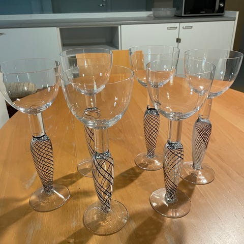 Anu Penttisen Marimekolle suunnittelema upea Sukat makkaralla -sarjan viinilasi. Vetoisuus 3 dl. Värisävyinä ruskeaa, violettia ja vihreää. Kunto erinomainen. Postitus hyvin pakattuna.
