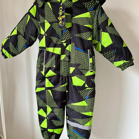 Lasten talvihaalari pojille. Haalarissa on musta-vihreä kuviollinen päällikangas ja heijastinyksityiskohtia lahkeessa. Edessä on vetoketju, jossa vetoketjusuojus, sivutaskut. Hihansuissa ja lahkeissa on kuminauharesorit. Takana on joustoresori vyötäröllä istuvuuden parantamiseksi. Hupussa on irrotettava tekoturkisreunus. Soveltuu käytettäväksi ulkohaalarina viileään säähän.