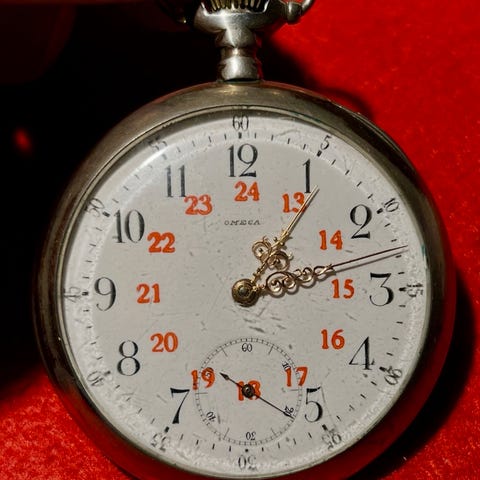 Hopeinen Omegan taskukello.