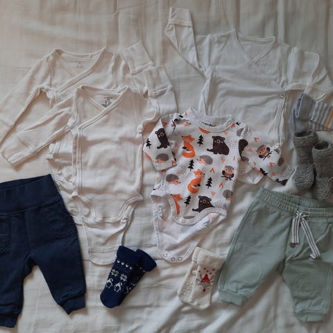 56 koko, merkkejä mm: newbie, peuhu, tutta, kuutti, lupilu, h&m, me&i, name it, ciraf, koko setti 60e.
