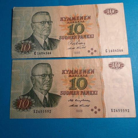 10 mk setelit vuosilta; 1963, 1980, 1986