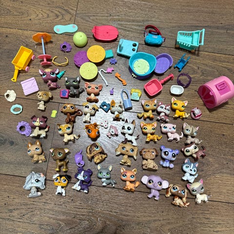 Littlest Pet Shop leikkisetit ja figuurit. Pakettiin kuuluu useita muovisia leikkisettejä, kuten taloja, kuljetusajoneuvoja ja liukumäkirakennelmia sekä suuri määrä pieniä eläinfiguureja. Osat ovat värikkäitä ja tarkoitettu pöytätason leikkeihin. Sopii rooli- ja mielikuvitusleikkeihin lapsille, jotka pitävät pienistä keräilyhahmoista ja niille suunnitelluista leikkiympäristöistä.figuutit ja hahmot 108kpl.rekvisiittaa esineitä 7kpl(2autoa ja hieno laiva)koko setti 60€.nouto ja myös tuon lähiseudulle.