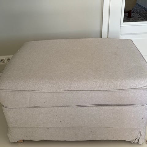 Kolmen istuttava useita vuosi käytössä ollut Ektorp sohva. Eläin talous. Ei päällisiä. Ikeassa yhä myynnissä erilaisia päällisiä.