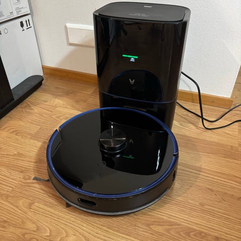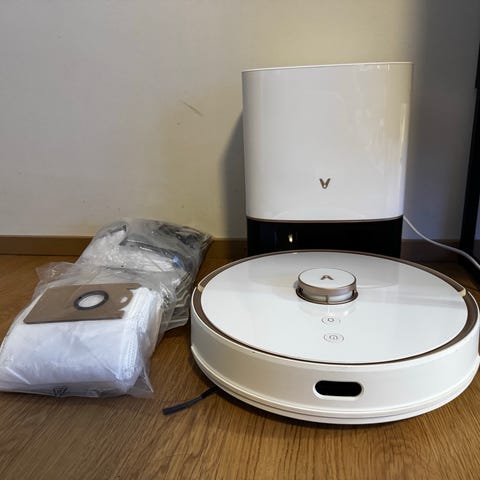 Viomi S9 robotti-imuri pölysäiliöasemalla valkoinen