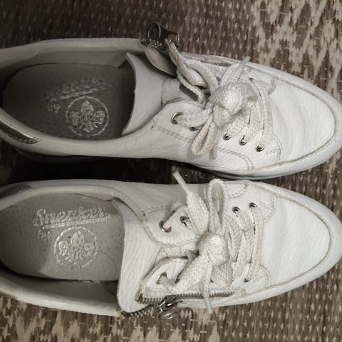 Kauniit ja monikäyttöiset Rieker -tennarit valkoisena. Päällinen synteettistä materiaalia, sisäpohja nahkaa. Sirot, napakka istuvuus.