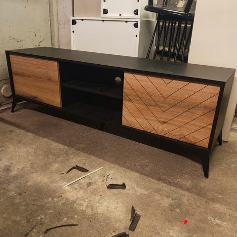 Uusi, paketissa oleva Niilas tv-taso, ostettu joulukuussa mutta ei tullutkaan käyttöön. Terrieri avannut pahvilaatikkoa, ei vaikuta sisältöön. Nouto.