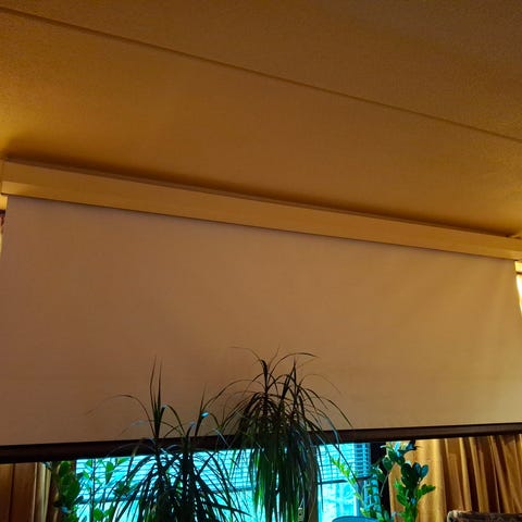 Hyvä kuntoinen valkokangas, alumiinikotelossa käytön jälkiä jotka näkyvät kuvissa, eivät vaikuta kankaaseen.