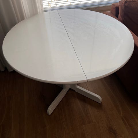 Myydään iso vanha vintagehenkinen pyöreä pöytä. Pöytälevy puuta, jalka muovia. Halkaisija 105cm. Jalka irroitettava, joten helppo kuljettaa.