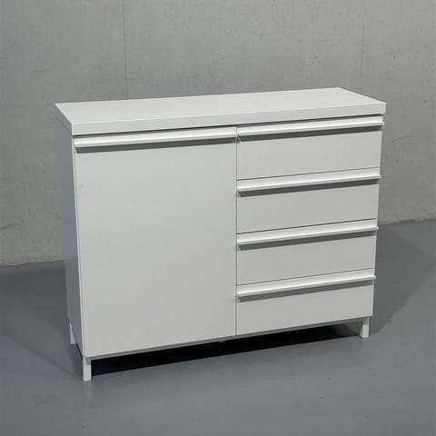 Hakusanat: senkki, hylly, moderni, taso, levy, lipastot, valkoinen, huonekalu, huonekalut, senkit, metallijalat, säilytyskaluste, pohjoismainen minimalismi, lipasto, käytetyt huonekalut, vetolaatikko, kaappi