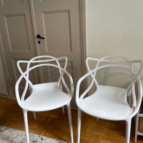 Moitteettomassa kunnossa 2 kpl valkoisia tuoleja, esim ruokapöytään