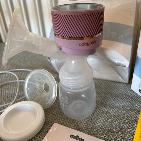 Babyono Pico sähkökäyttöinen rintapumppu. Mallissa on kolme toimintatilaa: hierontatila, pumppaustila ja imetystila. Pakkauksen kuvauksen mukaan settiin kuuluu pullo korkilla, stabiloiva alusta sekä rintasuoja kahdessa koossa (24 mm ja 21 mm). Laitteessa on ohjauspaneeli yläosassa ja se on suunniteltu äidinmaidon pumppaamiseen ja keräämiseen pulloon.