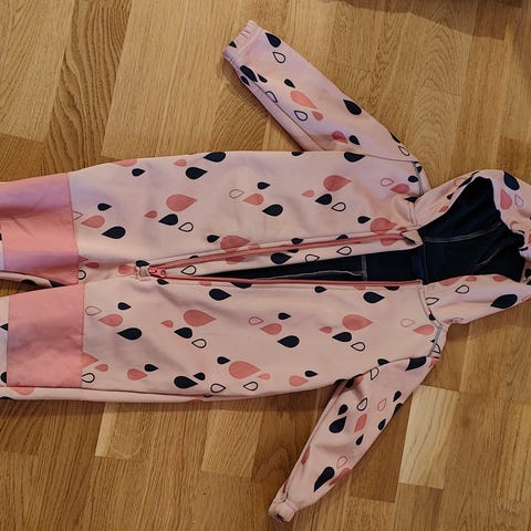 Käytetty softshell haalari kokoa 92. Pientä karheumaa polvissa, ei reikiä. Peppu siisti. Takana oleva heijastin osittain irti, ei kuitenkaan reikää siinä. Jalkalenksut on. Nouto Lieto tai toridiili.