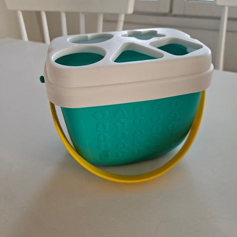 Kahvoilla kannettava palikkalaatikko ja palikat.
