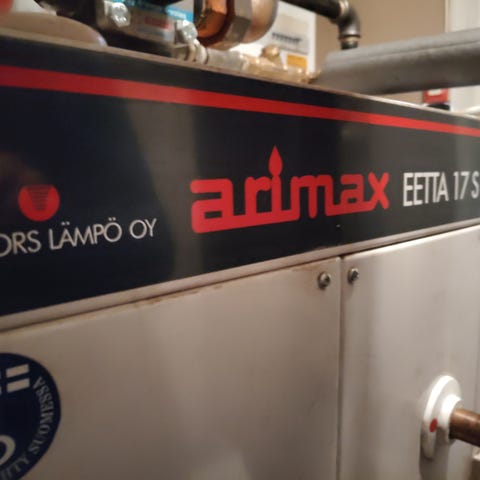 Arimax 17R öljykattila, Ouman EH-80 -lämmönsäädin sekä paisuntasäiliö. Poistetaan käytöstä toimivana huhtikuussa. Mukana vanha mutta toimiva öljypoltin.