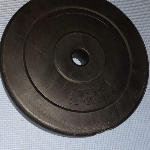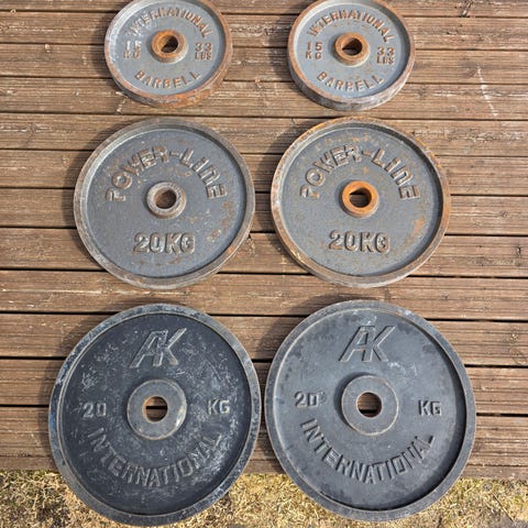 Levytankosarja/pumppisetti, mukana 2x10kg, 4x5kg, 5x2,5kg ja 2x1,25kg. Nouto murtosenmutkasta.