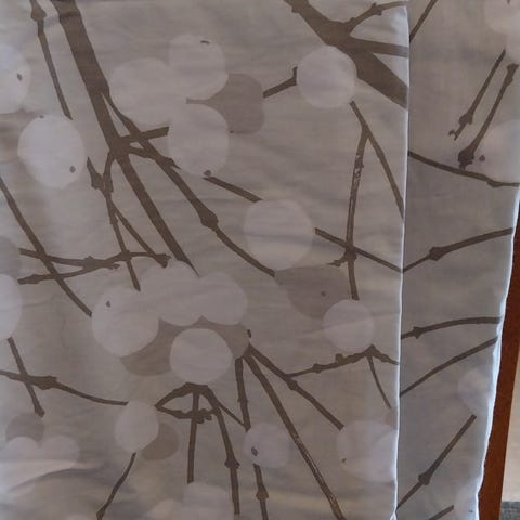 Kauniit Marimekon 142 x 235 cm verhot ( 2 kpl). Erittäin hyvässä kunnossa, mutta toisessa verhossa alareunassa muutama tahra. Näkyvät kuvissa.