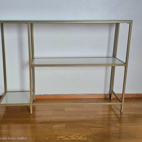 Vajaa kolme vuotta tv-tasona ollut Vekestä ostettu konsolipöytä. Ovh. 635€. Vain nouto. Väri: valkopesty tammi, taso italialaisesta travertiinista.