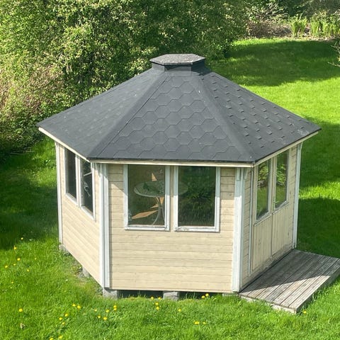 Myyjä irroittaa vesi ja sähköliittymän. Nosto kuorma-auton lavalle onnistuu, sopimuksen mukaan. Kuljetusleveys on 4m, vaatii erikoiskuljetuksen. Terassi tulee kaupanpäälle. Tämän rakentaminen valmiiksi maksoi reilusti yli 20te. Pelkät puuosat maksaa tänäkin päivänä 9te. Lisäksi sähkötyöt, putkityöt, ilmalämpöpumppu, eristeet, lisäikkunat, katto ja räystäät, sekä työ. Siirto onnistuu helposti hiiab autolla.