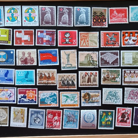 Harvemmin saatavilla olevia entisen itsenäisen valtion Jugoslavian postimerkkejä.
