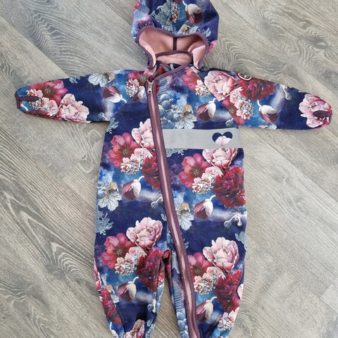 Siistikuntoinen välikausihaalari koossa 80. Melko napakka koko, voisi sopia pienemmälle paremmin päälle. Meille tullut käytettynä ja ollut muutamasti päällä. Muutoin hyvässä kunnossa, mutta huomasin että hihan heijastava teksti vähän lohkeillut ja irtoilee. Sisältä pehmeää fleecen tuntuista materiaalia.