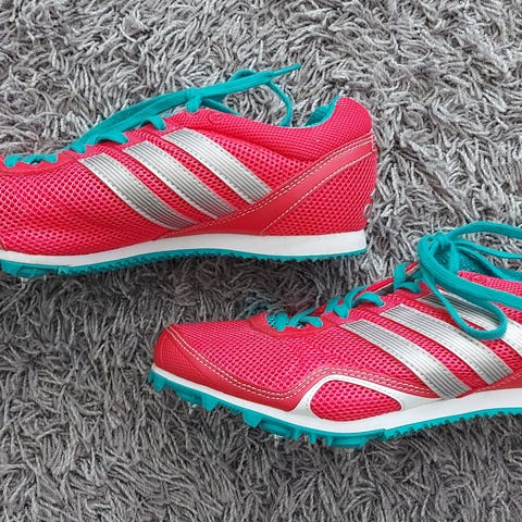 Adidaksen yleispiikkarit 37 1/3. Sisämitta 23,5cm. Hiekasta värjääntyneet ja joitain piikeistä tulleita naarmuja.