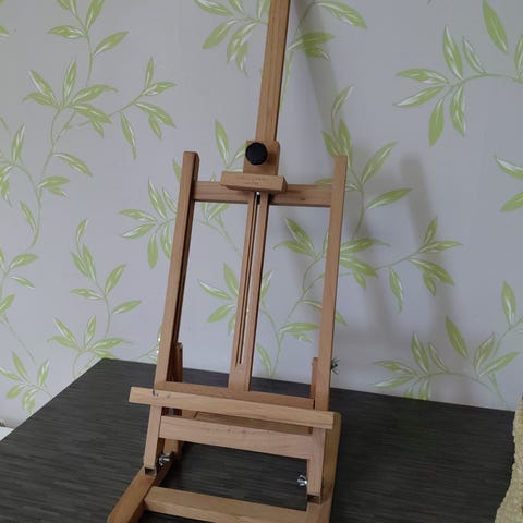 Mont Marte pöytäteline ja säilytyslaatikko. Tuote on valmistettu vaaleasta puusta ja siinä on saranoitu kansi sekä sisäinen lokero tarvikkeiden säilytykseen. Telineen yläosaan voi asettaa maalauspohjan tai piirustusalustan. 33x25,5 cm