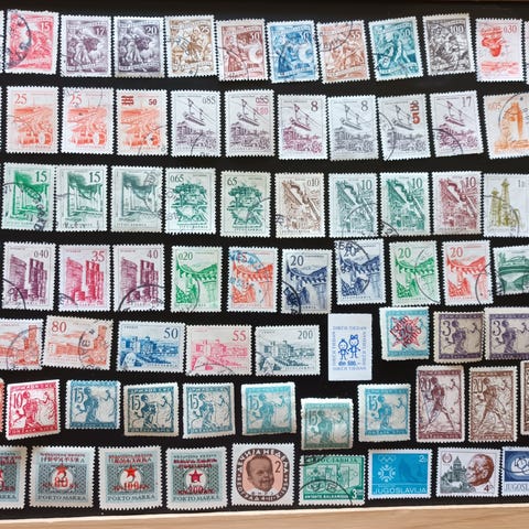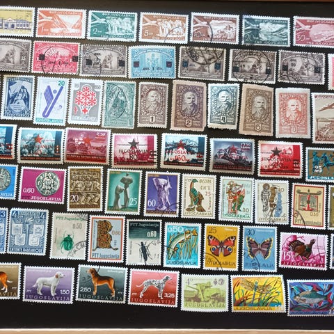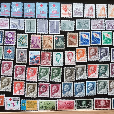 Harvemmin saatavilla olevia entisen itsenäisen valtion Jugoslavian postimerkkejä.