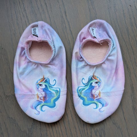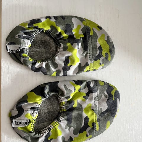 21-23 koon arvellen kahdella lapsella nimien perusteella olleet tossut. Huomioi, että kuminauha ei ole enään yhtä napakka kuin uutena.