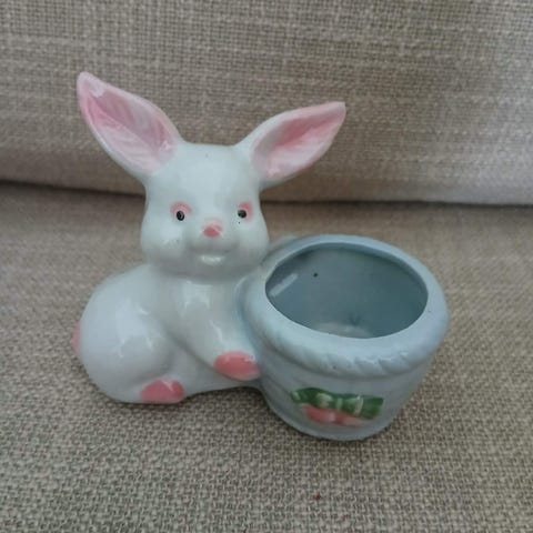 Myydään Pentikin Jänöjussi, jonka korvissa on särö. Korvat pysyvät kiinni, mutta heiluvat. Liimalla särön saa lähes piiloon.