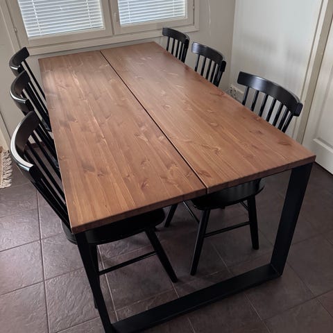 90x180cm honka musta lankkupöytä puujaloilla. Erittäin hyvässä kunnossa.