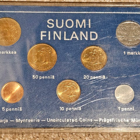 Vuoden 1974 rahasarja Suomesta. Kuin uusia.