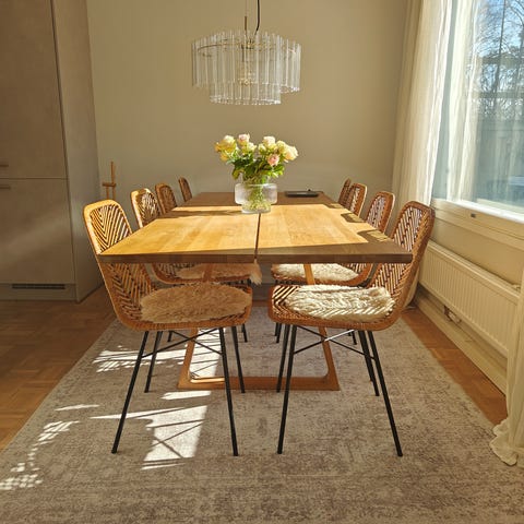 Kauniin muotoilun lisäksi tuoli on erittäin hyvä istua ja kevyt siirrellä.