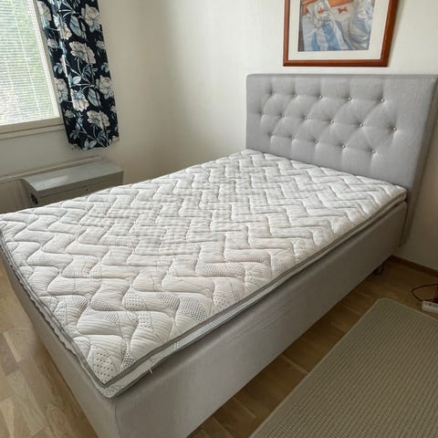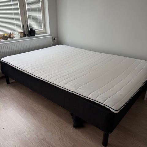 Hyvä kuntoinen 140 cm leveä musta Malm sängyn runko sekä joustinpatja.