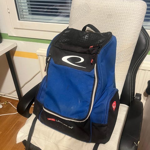 Frisbeegolfreppu, mihin mahtuu 25 kiekkoa. Lisäksi etupuolella sekä sivuilla on erillisiä taskuja tarvikkeille. Sivuilla 2x 1,5L juomapullo holderia.