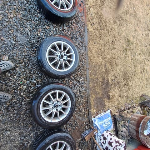Hyväkuntoinen rengas-setti tarjolla. Tasaisesti kuluneet laadukkaat continental renkaat. 6mm pintaa. Vanteissa ei ruostetta tai muuta kauheemmin. Paistovuosi renkaissa 22.