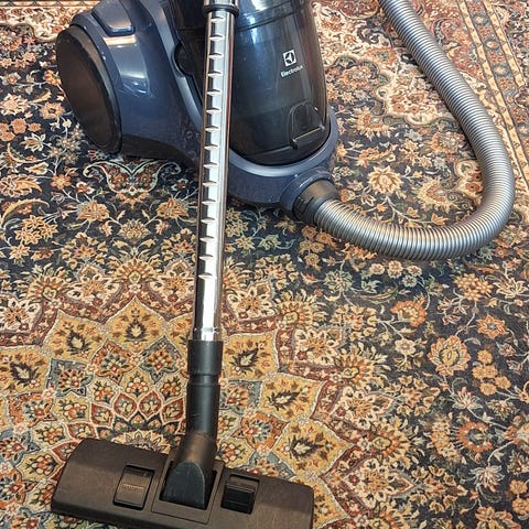 Electrolux Ergospace pölynimuri, jossa on 13 metrin ulottuvuus ja hygieniafiltteri 12. Mukana useita suulakkeita ja pölypusseja.