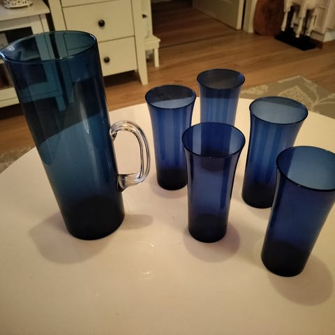 - Timo Sarpanevan suunnittelemat 60- luvun mustikansiniset Iittalan i-114 sarjan juomalasit 5 kpl